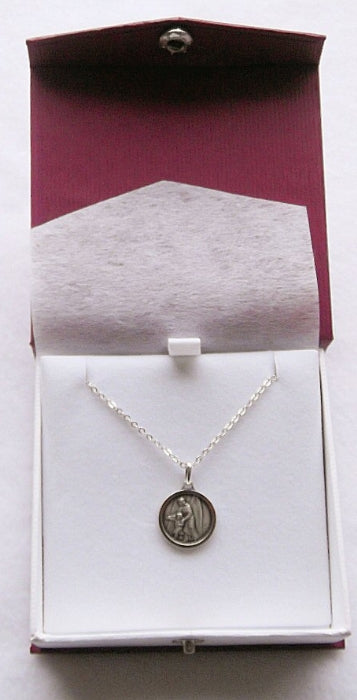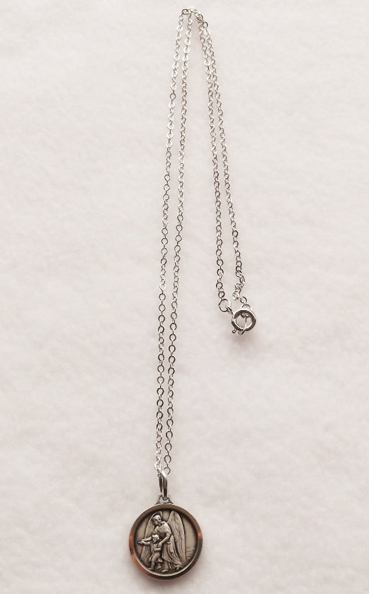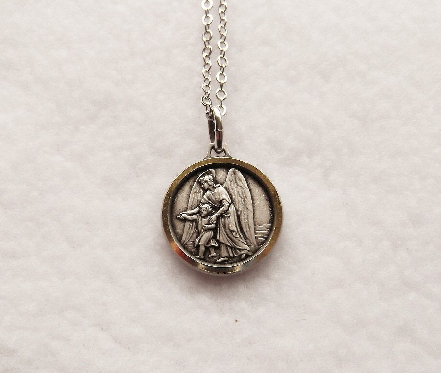 This beautiful pendant necklace has a silver plated chain and a 1.27cm Guardian Angel medal pendant.