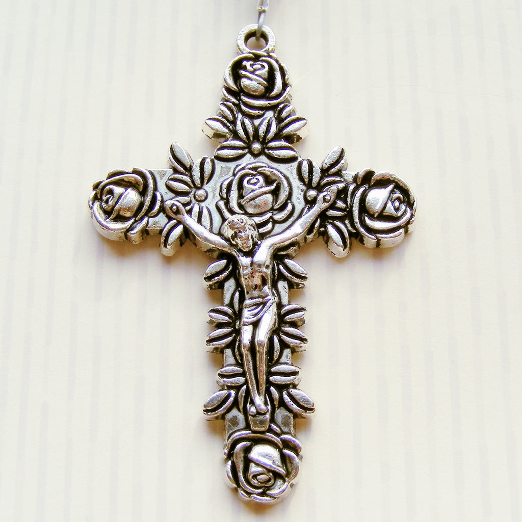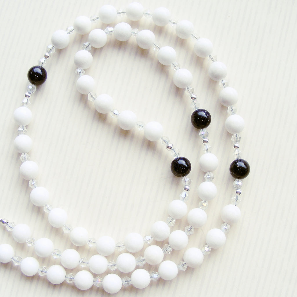 This beautiful Immaculate Conception Catholic rosary is handmade from 8mm white jade and blue goldstone beads, An ornate silver plated crucifix and an Immaculate Conception full colour enamel centerpiece compliments this exquisite rosary. it is strung on strong beading wire and measures approx. 52cm in length when laid flat,