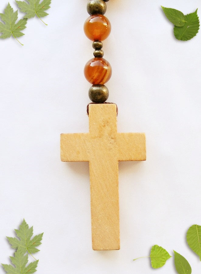 This handmade Anglican rosary features beautiful brown Banded Agate beads, perfect for aiding in Christian prayer and worship in church. A must-have for those seeking a deeper spiritual connection.