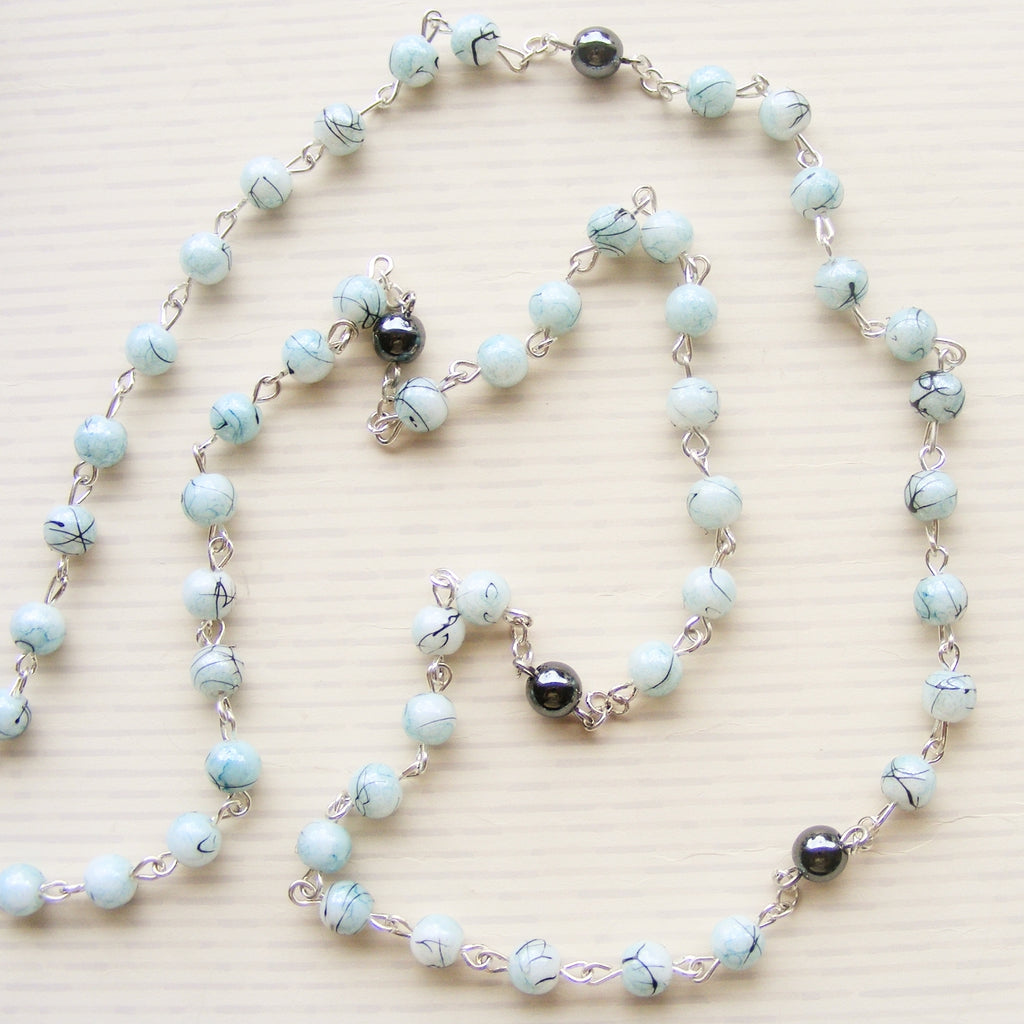 Handmade Chain Link Rosary - Pale Blue Glass - 6mm