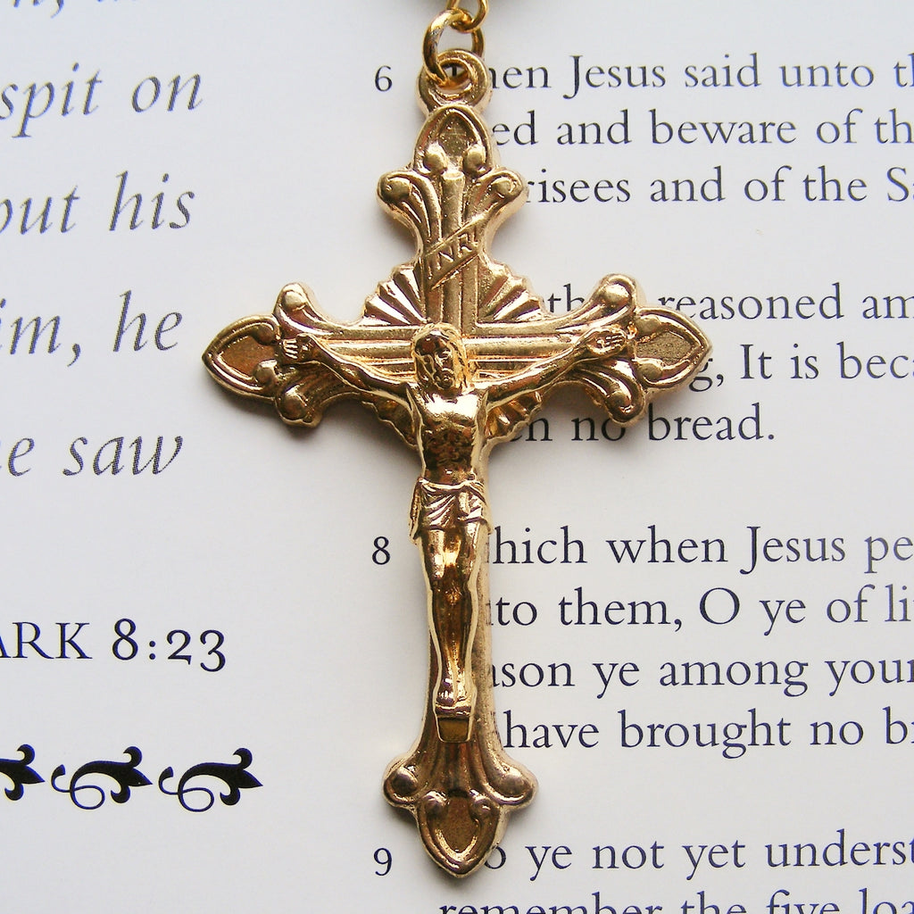 Measuring approx. 58cm in length when laid flat, Crucifix measures approx. 5cm